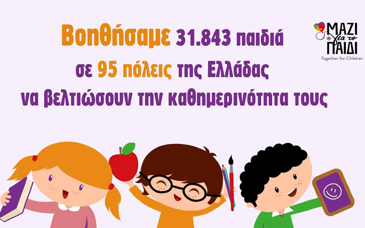 Η Ένωση «Μαζί για το Παιδί» βοήθησε 31.843 παιδιά σε 95 πόλεις της Ελλάδας να βελτιώσουν την καθημερινότητα τους.