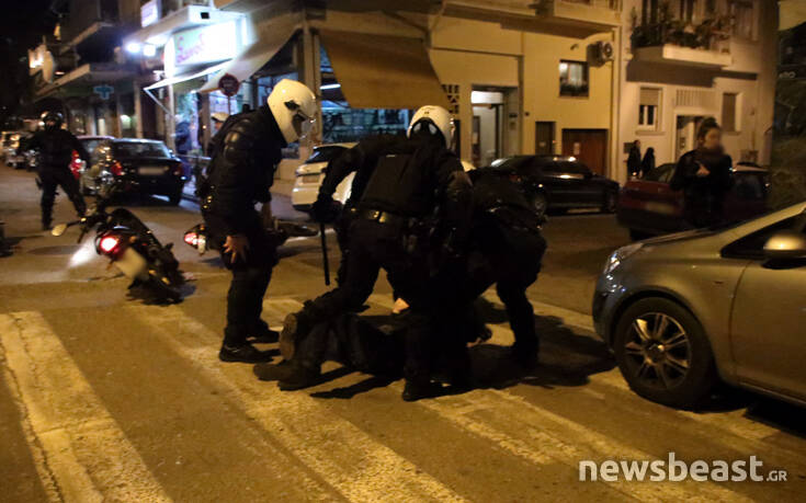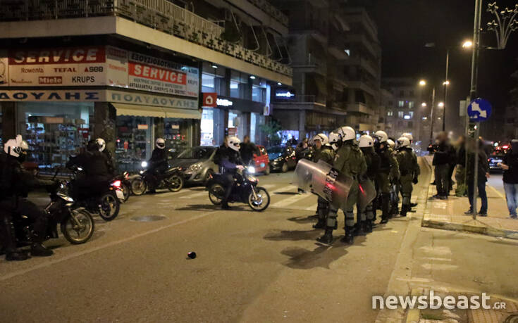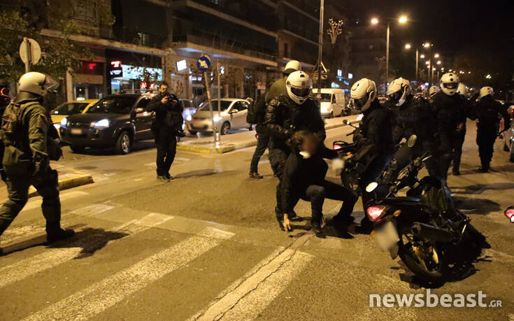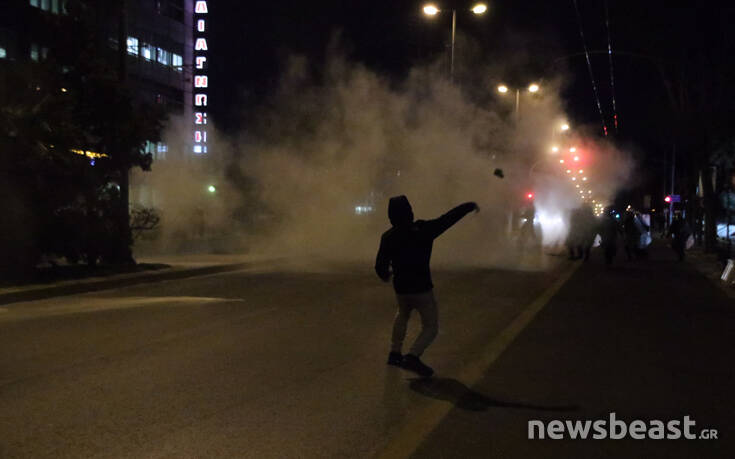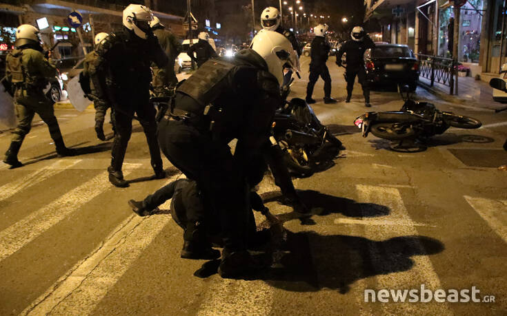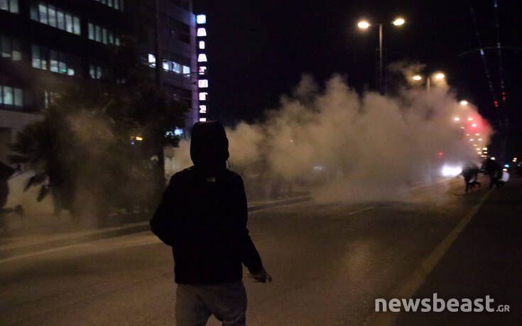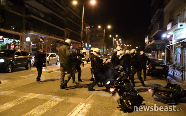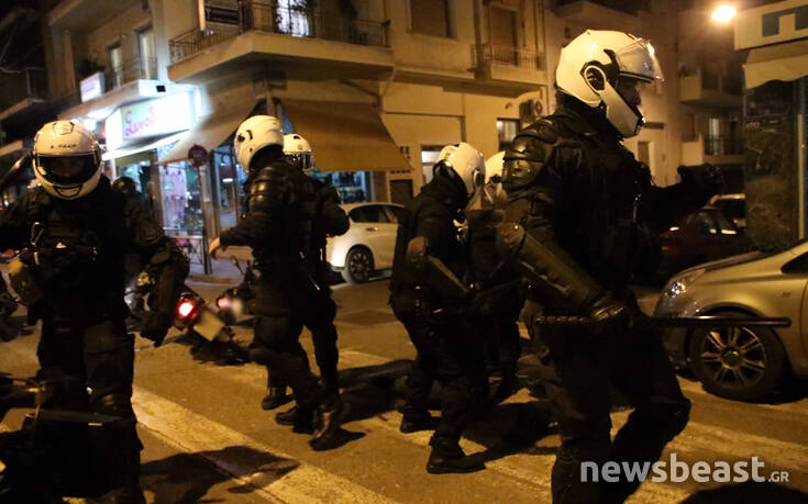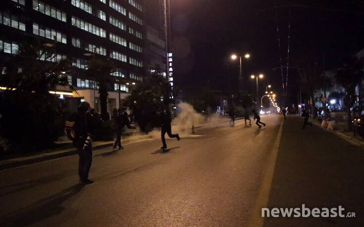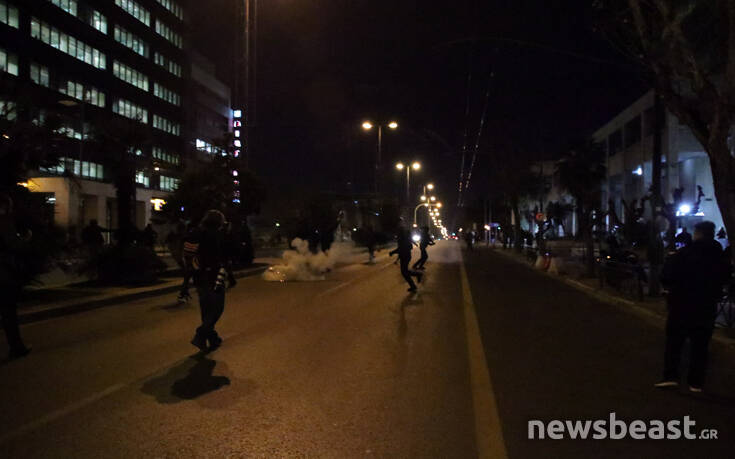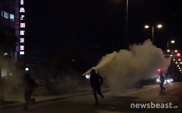 Τα ΜΑΤ απάντησαν με χημικά και κρότου λάμψης ενώ αστυνομικοί της ομάδας «ΔΡΑΣΗ» πραγματοποίησαν προσαγωγές μετά από κυνηγητό των διαδηλωτών στα γύρω στενά.