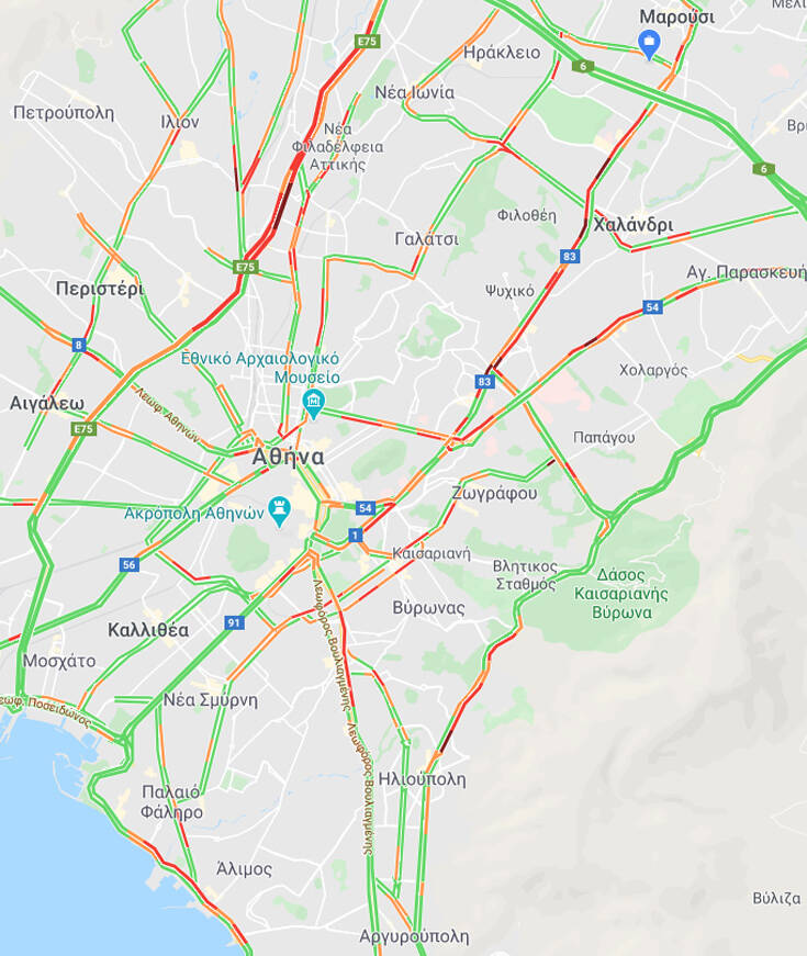 Το newsbeast.gr σάς ενημερώνει για την κίνηση στους δρόμους της Αττικής. Δείτε πού έχει μποτιλιάρισμα και πού η κίνηση είναι ομαλή