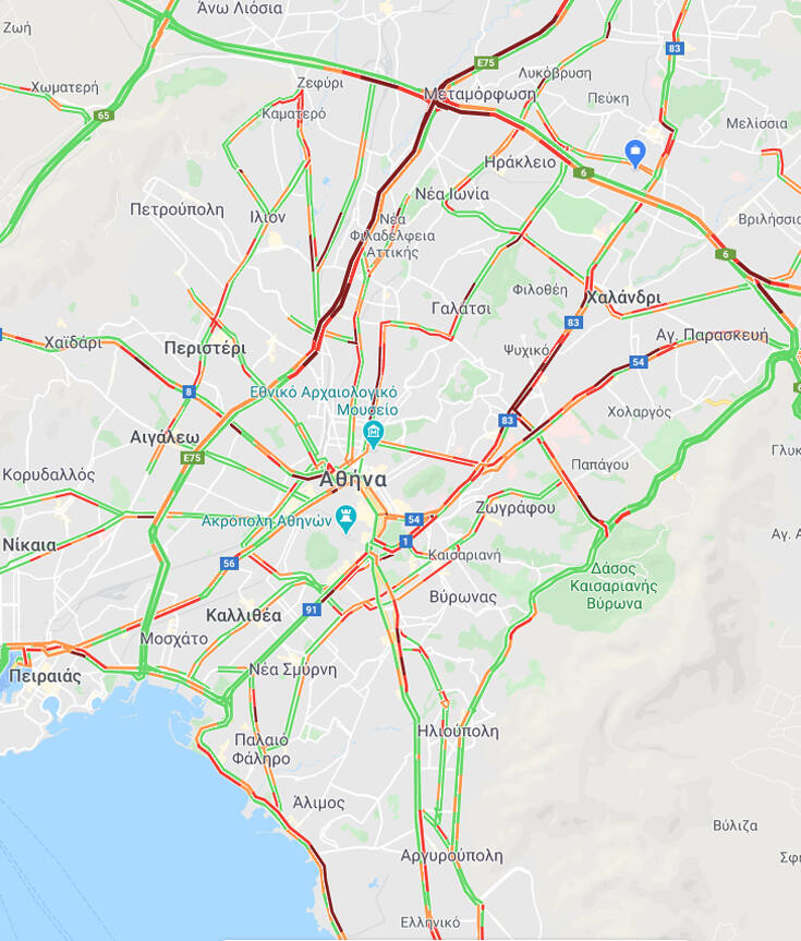 Το newsbeast.gr σάς ενημερώνει για την κίνηση στους δρόμους της Αττικής. Δείτε πού έχει μποτιλιάρισμα και πού η κίνηση είναι ομαλή