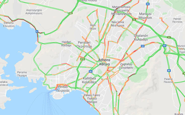 Αρκετή κίνηση ή για την ακρίβεια… ακινησία καταγράφεται και στην εθνική οδό Αθηνών – Λαμίας, στο ρεύμα καθόδου προς Πειραιά, στο ύψος της Μεταμόρφωσης.