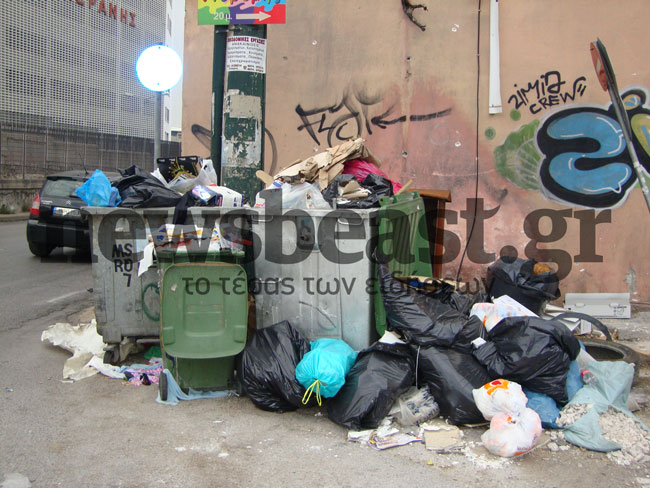Δευτέρα, 28 Ιουνίου, 2010. Δίπλα από την Εστία των Ναυτικών στην οδό Ομηρίδου Σκυλίτση φαίνεται ότι κάποιος ξέχασε να μαζέψει τα σκουπίδια…
