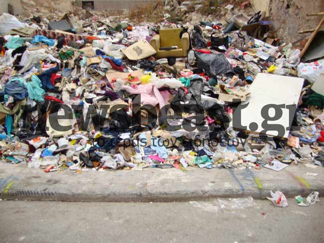 Δευτέρα, 28 Ιουνίου, 2010. Δύο κάδοι απορριμμάτων δεν φτάνουν για να καλύψουν τους τόνους σκουπιδιών που έχουν ξεχειλίσει…