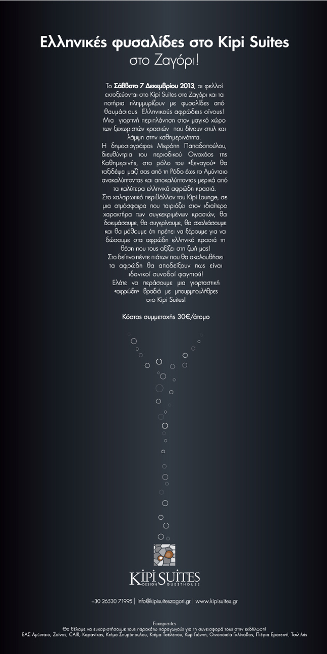 Δείτε εδώ περισσότερες πληροφορίες για το μοναδικό πακέτο εμπειρίας από το Kipi Suites.