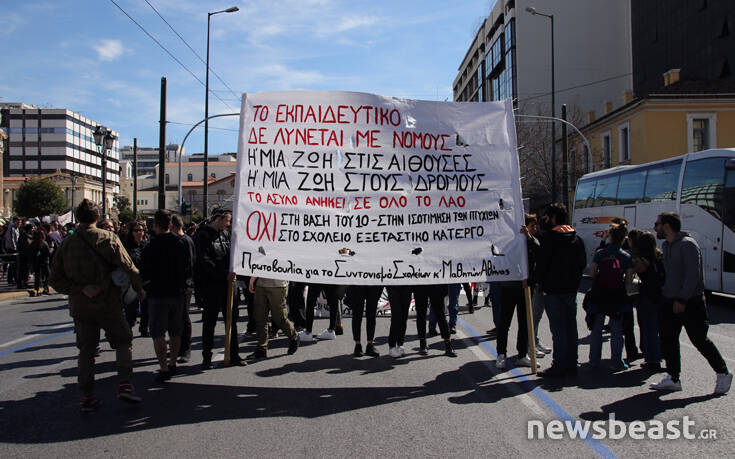 Σε εξέλιξη βρίσκεται αυτή την στιγμή η πορεία μαθητών στους δρόμους του κέντρου της Αθήνας. Κλειστές είναι Πανεπιστημίου και Σταδίου. Δείτε τις φωτογραφίες του newsbeast.gr Φωτορεπορτάζ: Γιάννης Κέμμος