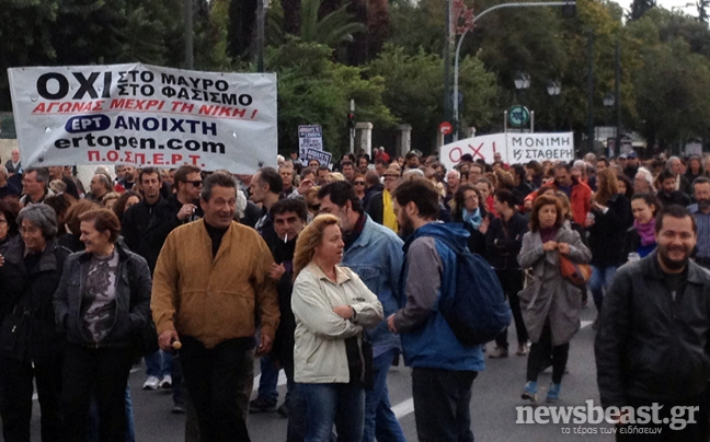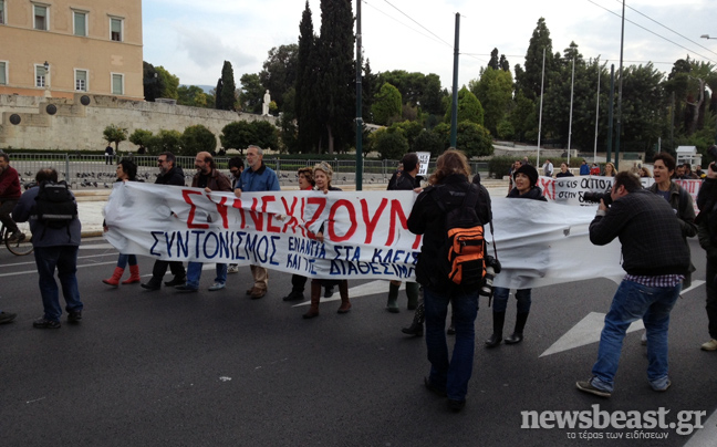 Οι συγκεντρωμένοι βρίσκονται στη λεωφόρο Αμαλίας, η οποία παραμένει κλειστή εδώ και αρκετή ώρα.