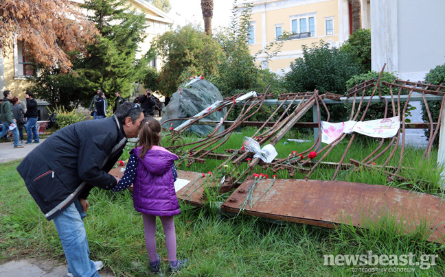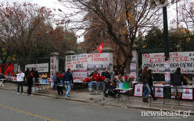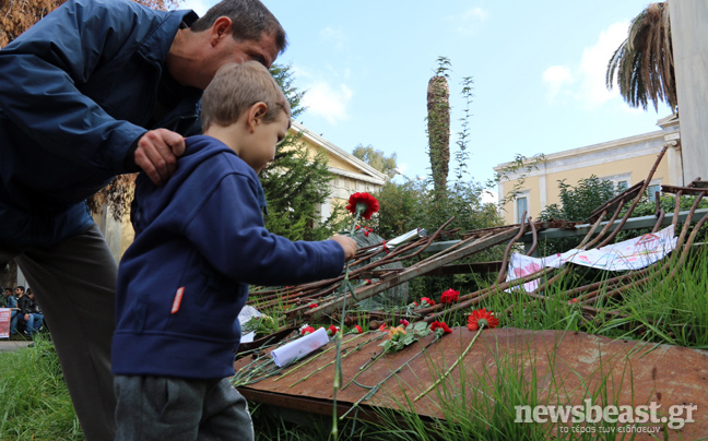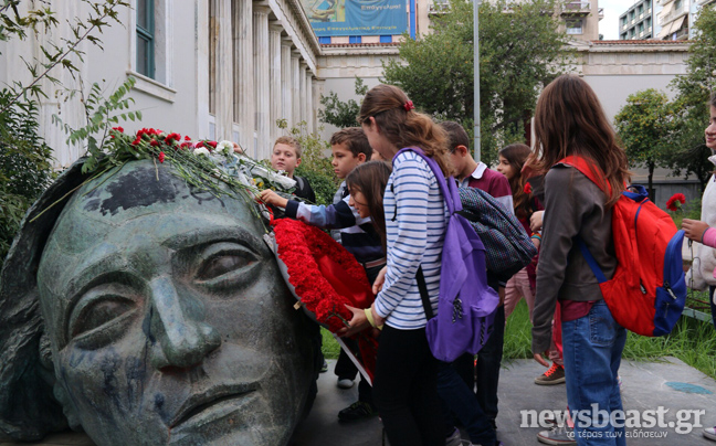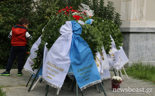 Όπως βλέπετε στις φωτογραφίες που δημοσιεύει το newsbeast.gr σχολεία και γονείς καταθέτουν από νωρίς στεφάνια και λουλούδια.