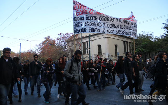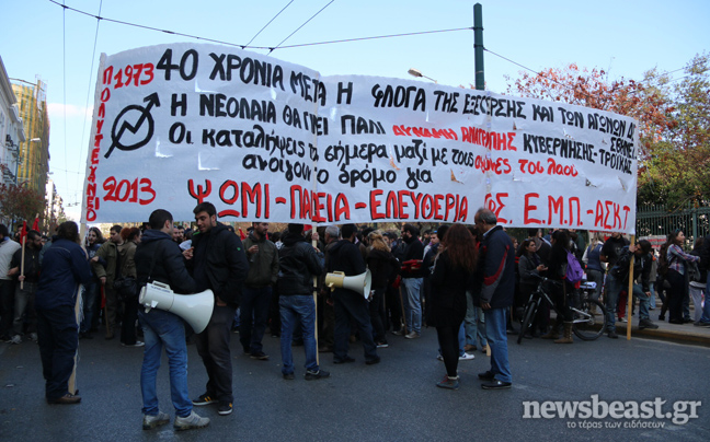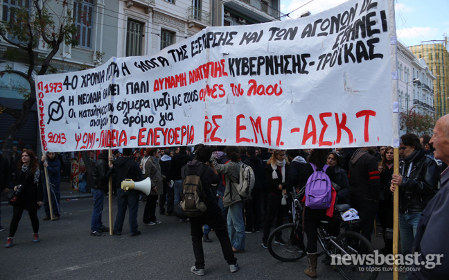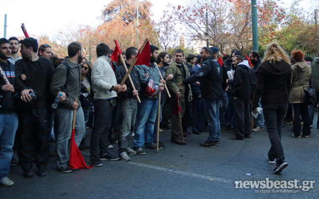Νωρίτερα κρατώντας, πανό με συνθήματα για την 40η επέτειο της 17ης Νοέμβρη, είχαν ξεκινήσει από το Πολυτεχνείο οι φοιτητικοί σύλλογοι με κατεύθυνση προς την πλατεία Κλαυθμώνος. Εκεί αναμένεται να ενωθούν με τους υπόλοιπους συγκεντρωμένους με τελικό προορισμό την αμερικάνικη πρεσβεία.