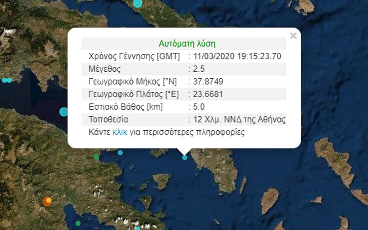 Σεισμός έγινε τώρα στην Αττική. Ο σεισμός σημειώθηκε 12 χιλιόμετρα νότια νοτιοδυτικά της Αθήνας, σύμφωνα με το Γεωδυναμικό Ινστιτούτο.