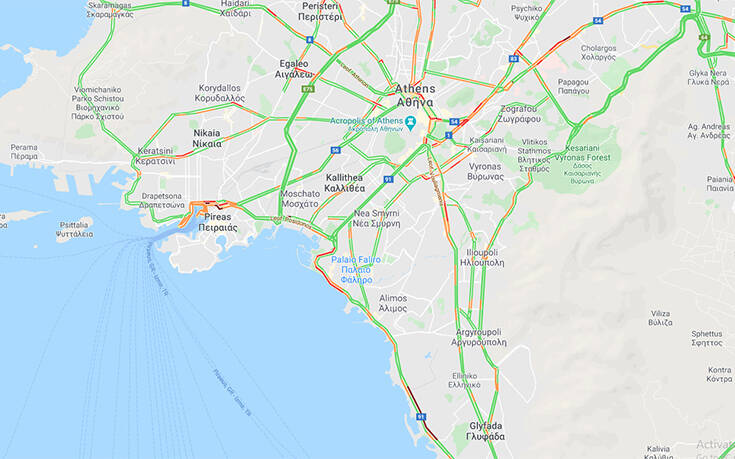 Καθυστερήσεις υπάρχουν επίσης στον Κηφισό, στο καθοδικό ρεύμα προς Φάληρο και στο ύψος της Μεταμόρφωσης, αλλά και σε βασικές λεωφόρους στο κέντρο της Αθήνας.