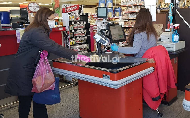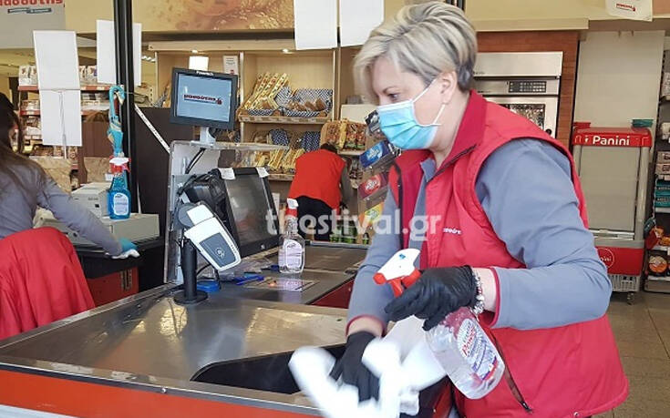 Το προσωπικό φοράει γάντια και μάσκες ενώ οι υπάλληλοι στα ταμεία χρησιμοποιούν καθαριστικά προκειμένου να καθαρίζουν τις επιφάνειες.