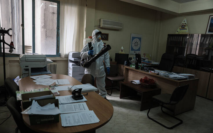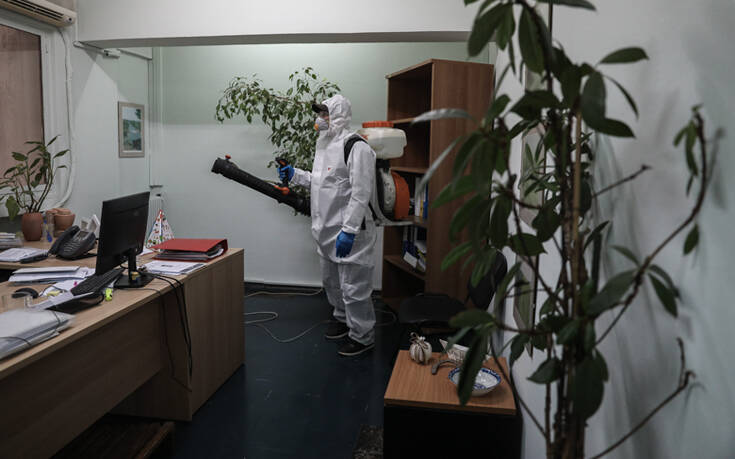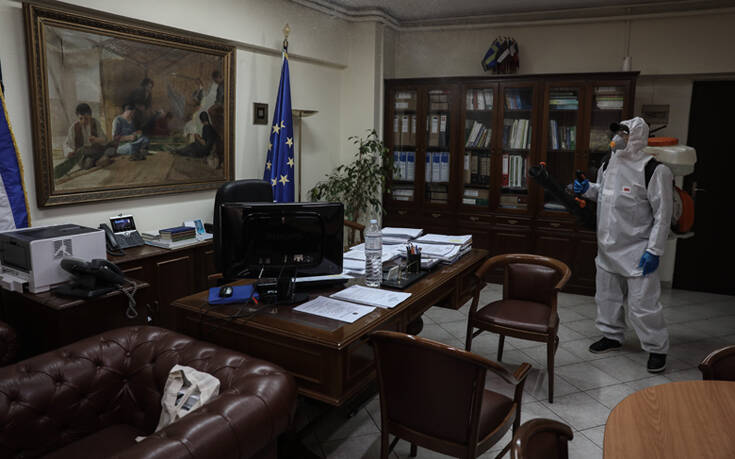 Δείτε τις φωτογραφίες από την απολύμανση στο υπουργείο: