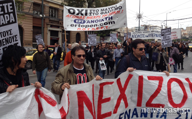 Οι κεντρικοί δρόμοι της πρωτεύουσας έχουν κλείσει αφού μία μερίδα εργαζομένων της ΕΡΤ κινήθηκε προς τη Βουλή.