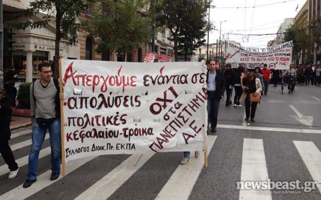 Οι φοιτητές και οι διοικητικοί πάντως σκόπευαν αρχικά να κινηθούν προς το Κοινοβούλιο αλλά αποφάσισαν να πάνε στην Ευελπίδων για να διαμαρτυρηθούν εκεί καθώς η υπόθεσή τους έχει πάει στη Δικαιοσύνη.