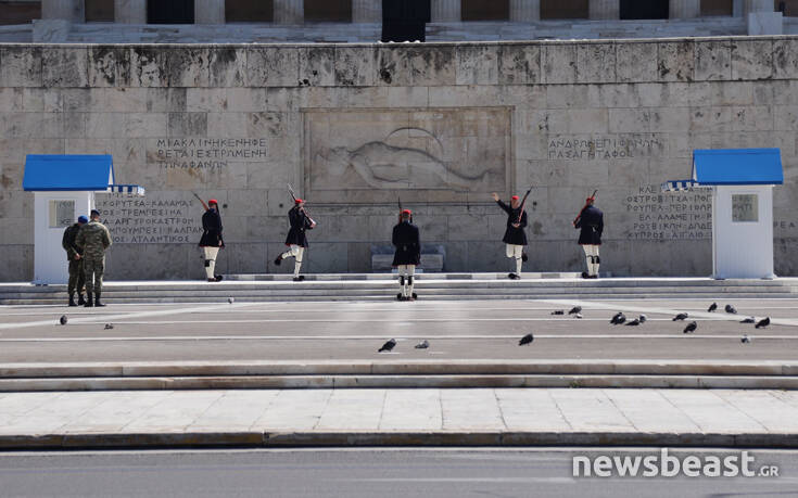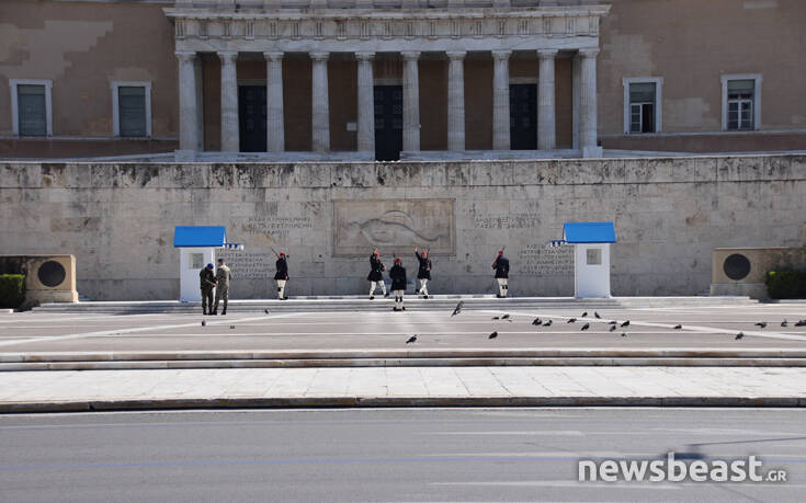 Εικόνες που κανείς δεν περίμενε πως θα ζήσουμε βιώνουμε πλέον λόγω κορονοϊού στη χώρα μας. Η αλλαγή φρουράς στο Μνημείο του Αγνώστου Στρατιώτη, μια στιγμή που σχεδόν πάντα περίμενε πλήθος τουριστών για να τη δει και να τη φωτογραφίσει, πλέον τελείται χωρίς ούτε ένα κλικ. Κι αυτό μέρα μεσημέρι, το πρωί της Τετάρτης 18 Μαρτίου 2020…