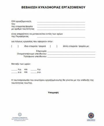 Η εν λόγω βεβαίωση χορηγείται μια φορά και οι εργαζόμενοι θα πρέπει να την έχουν μαζί τους κάθε μέρα.