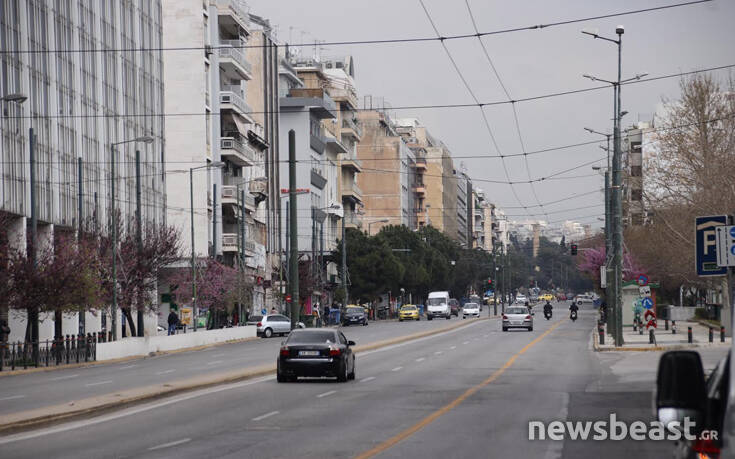 Η κεντρική λεωφόρος της Αθήνας που άλλοτε κανείς μπορούσε να παρατηρήσει ουρές χιλιομέτρων τώρα μοιάζει έρημη καθώς σε αυτή κινούνται οχήματα που μπορεί ο καθένας να μετρήσει στα δάχτυλα του ενός χεριού του.