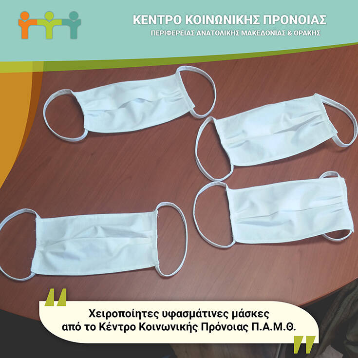 Στην υπηρεσία των ανθρώπων που ιδιαίτερα σε αυτή τη δύσκολη συγκυρία έχουν πολλαπλές ανάγκες, τέθηκε η διοίκηση και το προσωπικό του Κέντρου Κοινωνικής Πρόνοιας Ανατολικής Μακεδονίας και Θράκης. Στο πλαίσιο αυτό, το Κέντρο προχώρησε στην κατασκευή χειροποίητων υφασμάτινων μασκών, ως μέτρο προστασίας έναντι της πανδημίας του κορονοϊού, λαμβάνοντας αφορμή από την αντίστοιχη πρωτοβουλία του Κέντρου Κεντρικής Μακεδονίας.