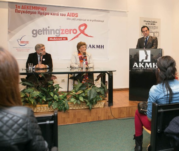 «Δεν μπορούμε να έχουμε κανέναν εφησυχασμό ως προς τα μέτρα που οφείλει να αναλάβει η Πολιτεία και το υπουργείο Υγείας ειδικότερα στον επιπολασμό του ιού του HIV. Το ΚΕ.ΕΛ.Π.ΝΟ. με τις δράσεις του όπως η ενημέρωση στα σχολεία, η διανομή δωρεάν συριγγών σε χρήστες ενδοφλέβιων ναρκωτικών ουσιών, τα προγράμματα δρόμου, η προσφορά στέγης σε οροθετικά άτομα, αποτελεί σήμερα βασικό βραχίονα στην αντιμετώπιση της εξάπλωσης της νόσου για την Ελλάδα» και συνεχάρη το ΙΕΚ ΑΚΜΗ, τη διοίκηση και τους σπουδαστές του, που εδώ και πολλά χρόνια συμπλέουν με τις κινητοποιήσεις του ΚΕΕΛΠΝΟ ενάντια στην εξάπλωση του AIDS.