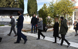 Ελάχιστοι φίλοι και συγγενείς κατάφεραν να δώσουν το παρών στην κηδεία του Πάνου Χατζηκουτσέλη λόγω των περιοριστικών μέτρων που έχουν θεσπιστεί ώστε να καταπολεμηθεί η εξάπλωση του κορονοϊού.