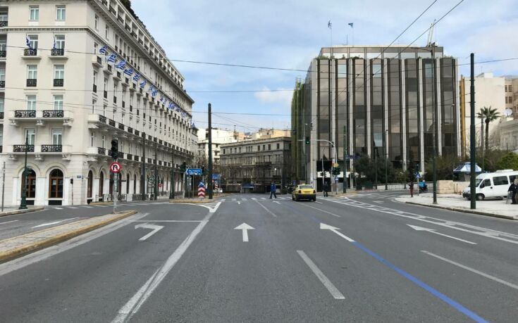 Η πλατεία Συντάγματος, ένα από τα κεντρικά σημεία συνάντησης στην πρωτεύουσα, ήταν άδεια, με παρόμοια εικόνα να μην παρουσιάζει ακόμα και τον Δεκαπενταύγουστο, όταν η Αθήνα αδειάζει λόγω καλοκαιριού.