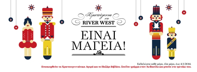 – 06.12-31.12: Το χριστουγεννιάτικο τρενάκι του RIVER WEST φοράει τα γιορτινά του και σας περιμένει για ατελείωτες βόλτες με όλη την οικογένεια, ενώ ο Αι-Βασίλης παίρνει τη θέση του στη χριστουγεννιάτικη αγορά, περιμένοντας όχι μόνο τους μικρούς μας φίλους να τον επισκεφθούν, αλλά και τους μεγάλους που θέλουν να ξανα-νιώσουν παιδιά! Από τη μεγάλη αυτή γιορτή δεν θα μπορούσε να λείπει και το «Ταχυδρομείο του Αι-Βασίλη», το οποίο θα είναι ανοικτό για να δεχθεί και να ταχυδρομήσει τις ευχές των παιδιών προς τον Αι-Βασίλη, ενώ, μετά από κλήρωση, το RIVER WEST θα πραγματοποιήσει ευχές των παιδιών αξίας 1.000 ευρώ!