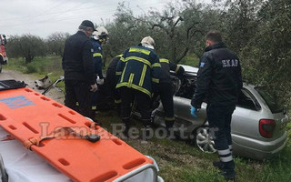 Αποτέλεσμα ήταν να εγκλωβιστεί σε αυτό τραυματισμένος ο οδηγός και να τραυματιστεί πιο ελαφρά η γυναίκα συνοδηγός.