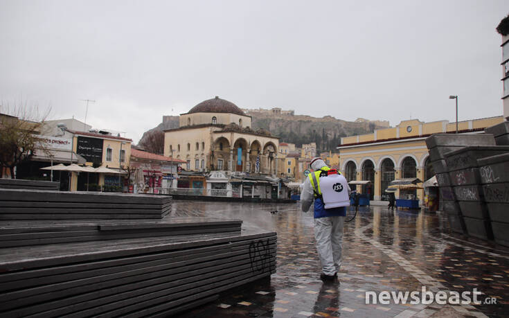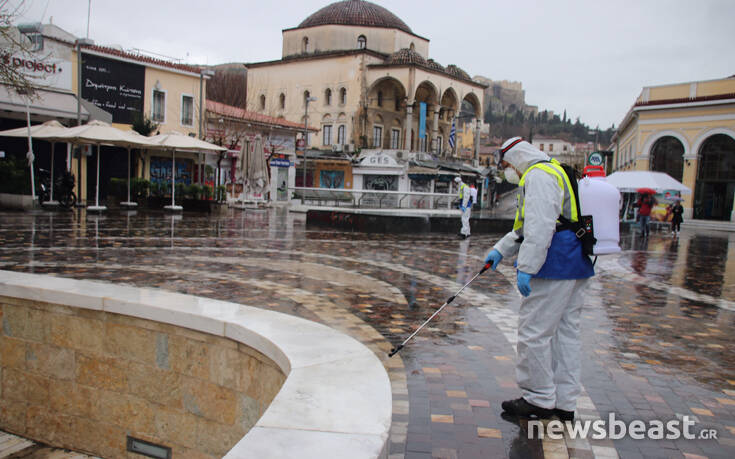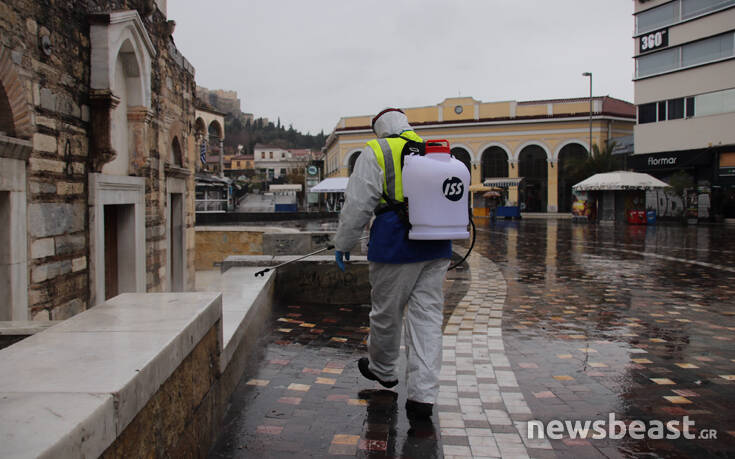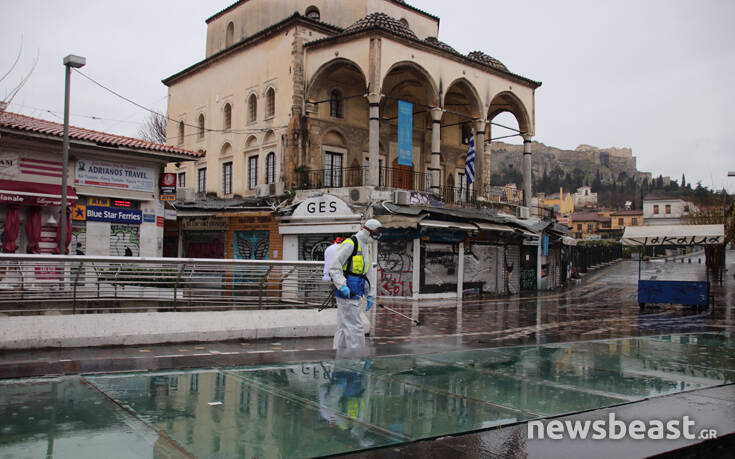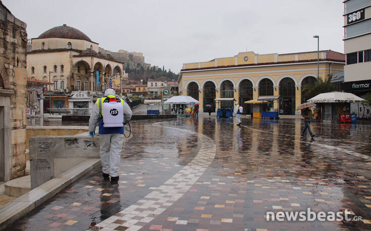 Σε απολύμανση της πλατείας στο Μοναστηράκι προχώρησε το πρωί της Παρασκευής (27/3) συνεργείο του Δήμου Αθηναίων στο πλαίσιο των μέτρων για την αποφυγή της εξάπλωσης της πανδημίας του κορονοϊού.