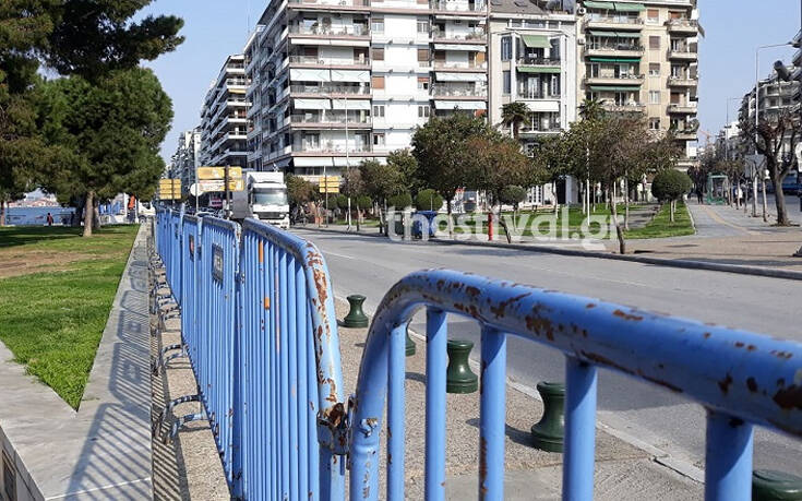Με 400 σιδερένια κιγκλιδώματα και σχοινί κλείνει από σήμερα η Νέα Παραλία της Θεσσαλονίκης, στο κομμάτι από το άγαλμα του Βότση έως το Μέγαρο Μουσικής, προκειμένου να μην επαναληφθούν εικόνες συνωστισμού στο πλαίσιο των μέτρων για τον περιορισμό εξάπλωσης του κορονοϊού.