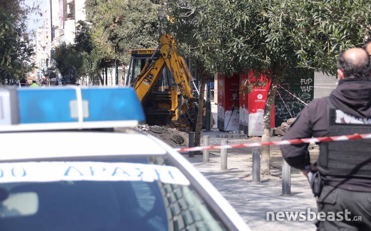 Αποκλεισμένη από αστυνομικούς είναι η οδός Ερμού στο κέντρο της Αθήνας καθώς στη συμβολή των οδών Ερμού και Νίκης βρέθηκε οβίδα του Β’ Παγκοσμίου Πολέμου μετά από έργα που έκανε η ΕΥΔΑΠ.