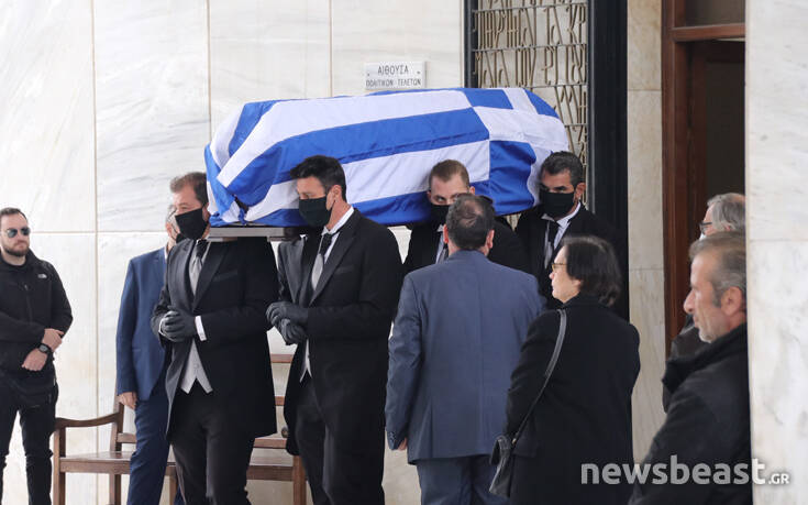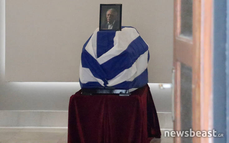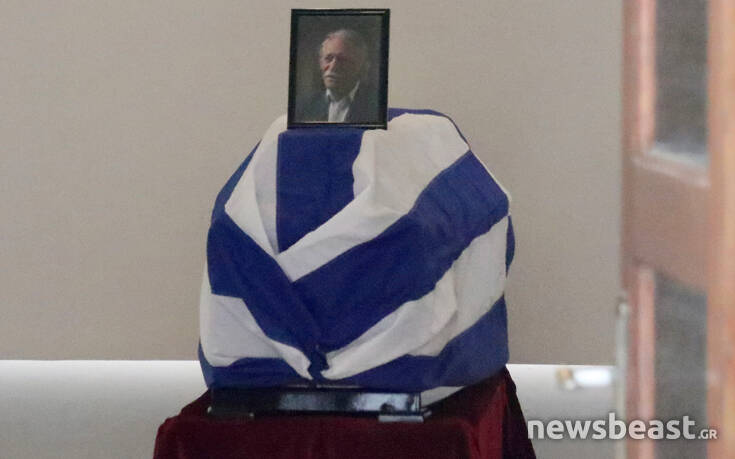 Το φέρετρο του Μανώλη Γλέζου ήταν τυλιγμένο με την ελληνική σημαία.