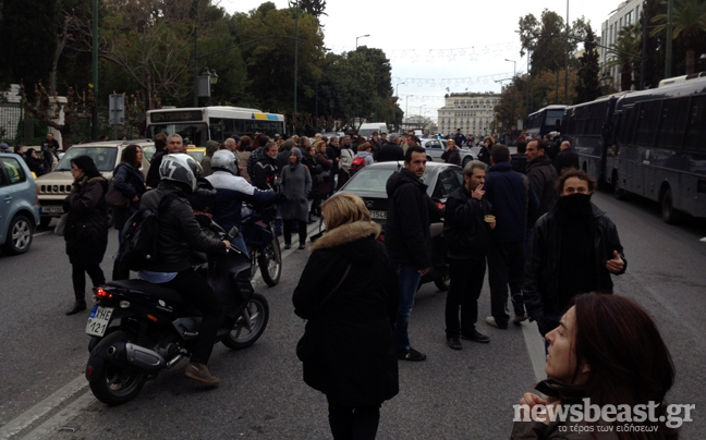 Αυτή την ώρα σημειώνονται μικροσυμπλοκές μεταξύ σχολικών φυλάκων και ΜΑΤ ενώ η κυκλοφορία στη Βασιλίσσης Σοφίας διεξάγεται μετ’ εμποδίων.