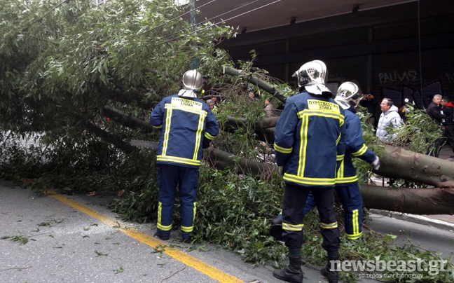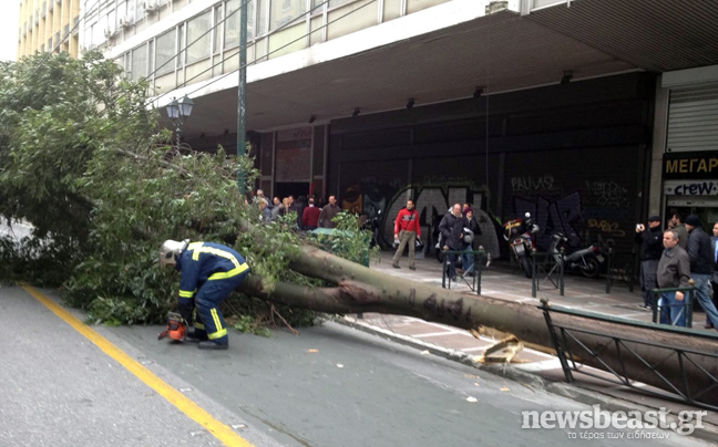 Κλειστή είναι αυτή την ώρα η οδός Σταδίου μπροστά από το υπουργείο Εργασίας καθώς δέντρο έπεσε στο οδόστρωμα από τους θυελλώδεις ανέμους.
