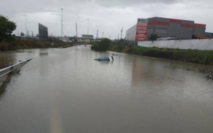 Ώρες αγωνίας πέρασε ένα ηλικιωμένο ζευγάρι όταν το αυτοκίνητό του εγκλωβίστηκε στα νερά που είχαν πλημμυρίσει τον παράδρομο της εθνικής οδού κοντά στα παλιά διόδια στο Σχηματάρι.