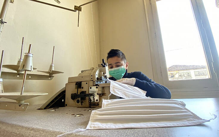 Μαζί με την οικογένειά του, ένας Ιρακινός ράφτης στα Τρίκαλα κατασκευάζει μάσκες για την προστασία από τον κορονοϊό.