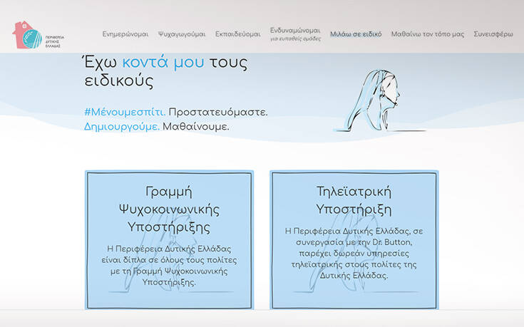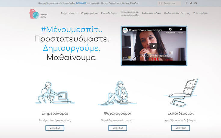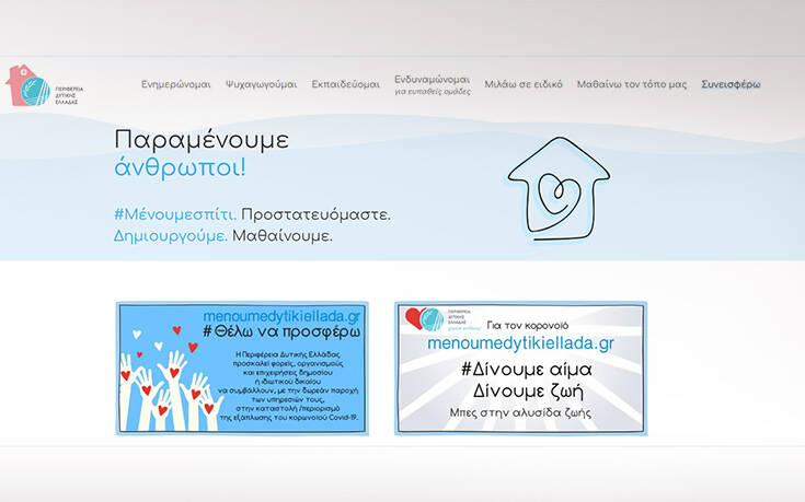 Η Περιφέρεια της Δυτικής Ελλάδας λανσάρει την online πλατφόρμα menoumedytikiellada.gr, η οποία προάγει τον εθελοντισμό, την αλληλεγγύη, την ενημέρωση, την ψυχαγωγία και την εκπαίδευση. Μια πρωτοβουλία που σχεδιάστηκε έχοντας στο επίκεντρό της αποκλειστικά και μόνο τις ανάγκες των πολιτών, όπως αυτές έχουν διαμορφωθεί αυτήν τη δύσκολη και γεμάτη προκλήσεις περίοδο της πανδημίας του κορωνοϊού Covid-19.