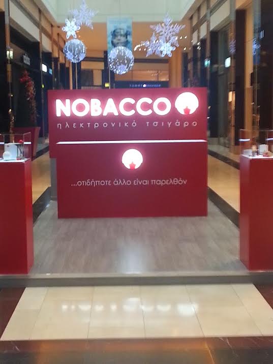 Από τις αρχές του Δεκέμβρη και μέχρι τις 5 Ιανουαρίου, η NOBACCO θα βρίσκεται στον ειδικά διαμορφωμένο χώρο της, στο ισόγειο του Golden Hall και προσκαλεί τους επισκέπτες να δοκιμάσουν την εμπειρία του «ατμίσματος», χρησιμοποιώντας μια έξυπνη εφαρμογή με τίτλο “Τί ατμό φουμάρεις;”, η οποία μέσα από λίγες ερωτήσεις κατανοεί το χαρακτήρα του επισκέπτη και προτείνει το συνδυασμό της συσκευής ηλεκτρονικού τσιγάρου και του υγρού αναπλήρωσης που του ταιριάζει. Όσοι δοκιμάσουν την εφαρμογή «Τι ατμό φουμάρεις» θα λαμβάνουν αυτόματα μέρος και στον διαγωνισμό της NOBACCO στον οποίο ο μεγάλος τυχερός θα κερδίσει τα ηλεκτρονικά τσιγάρα και τα υγρά αναπλήρωσης για μια ολόκληρη χρονιά.
