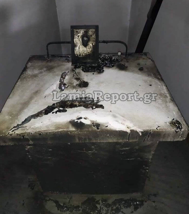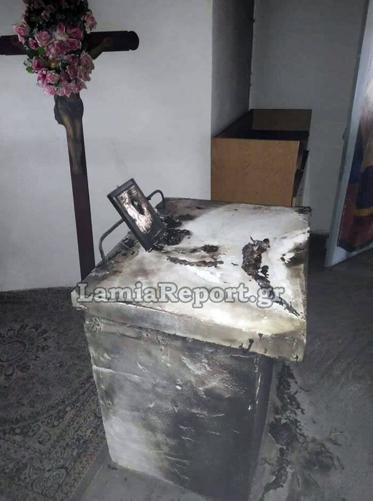 Άγνωστοι διέρρηξαν και έβαλαν φωτιά στο εκκλησάκι που βρίσκεται μέσα στο Κοιμητήριο του Σταυρού Λαμίας.