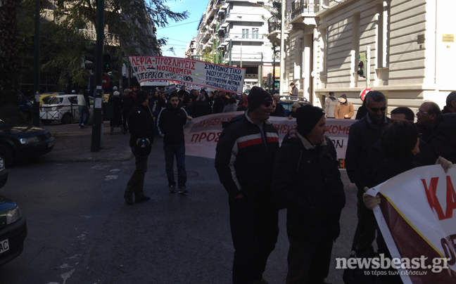Πορεία προς τη Βουλή πραγματοποιούν περίπου 300 γιατροί και εργαζόμενοι στον ΕΟΠΥΥ, που συγκεντρώθηκαν νωρίτερα έξω από το υπουργείο Υγείας.