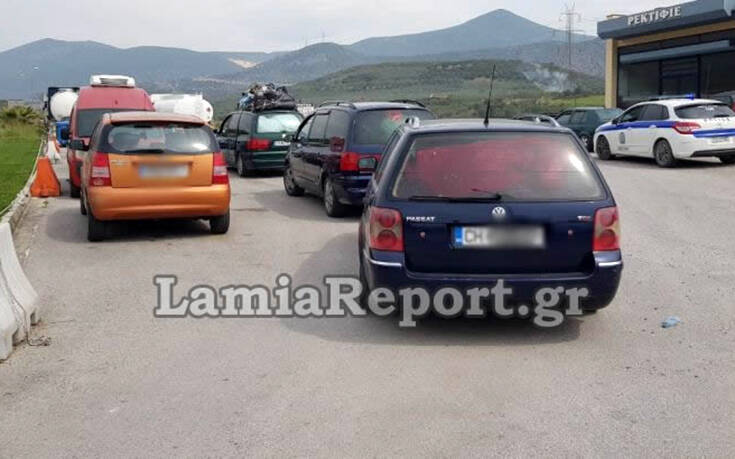 «Μπλόκο» έστησε η αστυνομία σε κονβόι Βουλγάρων έξω από τη Λαμία, οι οποίοι ταξίδευαν από το Ηράκλειο στη χώρα τους.