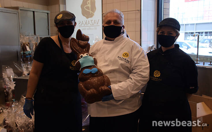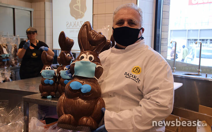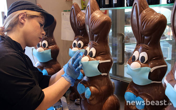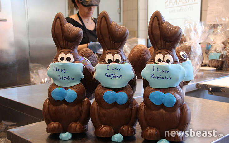 Τα σοκολατένια λαγουδάκια και τα σοκολατένια αυγά έχουν την τιμητική τους το Πάσχα. Καθώς όμως τα πράγματα είναι διαφορετικά φέτος οι ζαχαροπλάστες αποφάσισαν να τους φορέσουν μάσκες έτι ώστε να προστατευτούν κι αυτά από τον κορονοϊό.