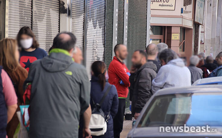 Οι αποστάσεις ήταν δύσκολο να τηρηθούν, με το περισσότερο κόσμο να βασίζεται σε μάσκες και γάντια που είχε φέρει από το σπίτι για να περιμένει χωρίς προβλήματα.