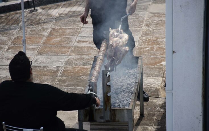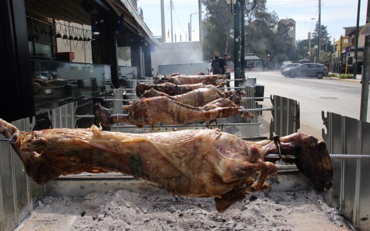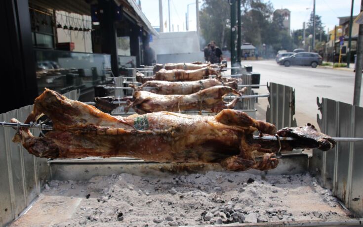 Αρκετά ψητοπωλεία στην Αθήνα έχουν βάλει αρνιά και κοκορέτσια στις σούβλες, προκειμένου να κάνουν ντελίβερι σε όσους μένουν σπίτι και δεν έχουν τη δυνατότητα να ψήσουν τον οβελία με τον πατροπαράδοτο τρόπο.