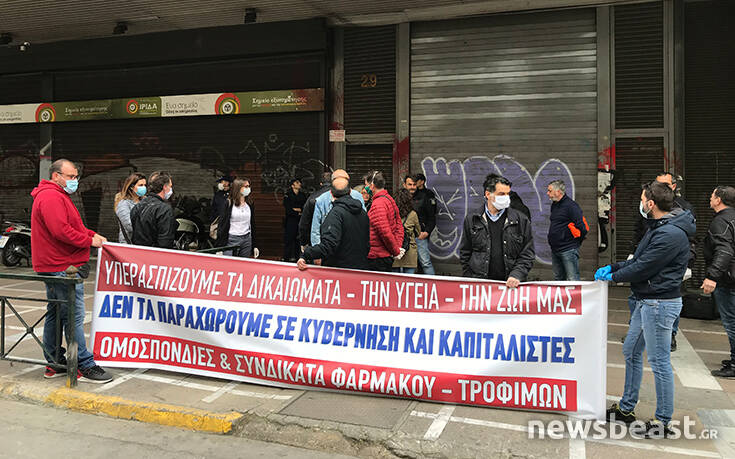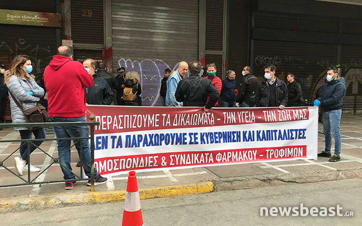 Παράσταση διαμαρτυρίας πραγματοποιούν στο υπουργείο Εργασίας οι Ομοσπονδίες Εργαζομένων στο Φάρμακο και στα Τρόφιμα – Ποτά αλλά και τα αντίστοιχα Συνδικάτα της Αττικής.