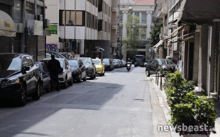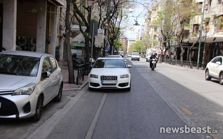 Με απέραντο πάρκινγκ έμοιαζε το πρωί της Πέμπτης (23/4) η οδός Ακαδημίας.