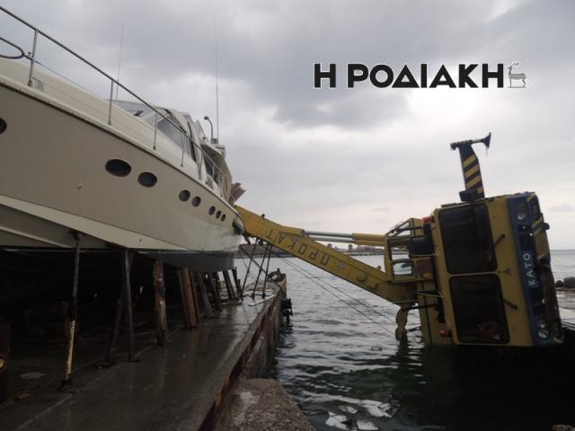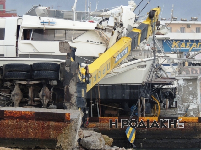 Ατύχημα σημειώθηκε το μεσημέρι στην περιοχή Καρνάγιο της Ρόδου, όταν γερανοφόρο όχημα ανετράπη και έπεσε πάνω σε σκάφος που βρισκόταν εκεί με αποτέλεσμα να προκληθούν αρκετές ζημιές.
