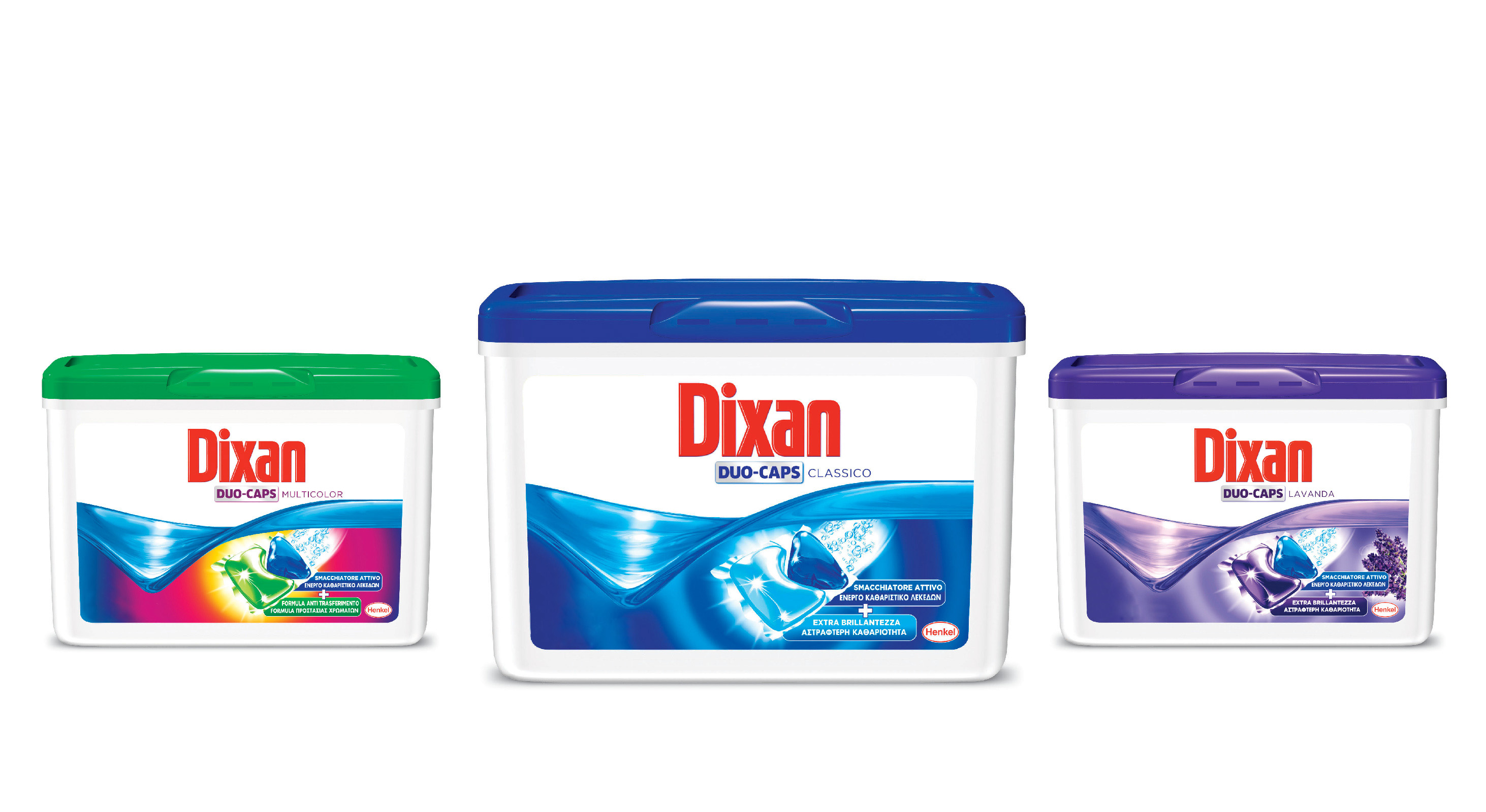 To Dixan, που πρώτο παρουσίασε στην ελληνική αγορά τις κάψουλες πλυντηρίου, ένα χρόνο μετά τη μοναδική αυτή καινοτομία, έρχεται με ανανεωμένη τεχνολογία να λανσάρει τα Dixan Duo Caps. Οι πρώτες και μοναδικές κάψουλες πλυντηρίου με διπλή δράση: από τη μια μεριά της κάψουλας υπάρχει η ενισχυμένη σύνθεση που προσφέρει αστραφτερή καθαριότητα ακόμη και στις χαμηλές θερμοκρασίες ενώ η άλλη μεριά της κάψουλας είναι πιο ενισχυμένη για αφαίρεση ακόμα και των πιο δύσκολων λεκέδων.