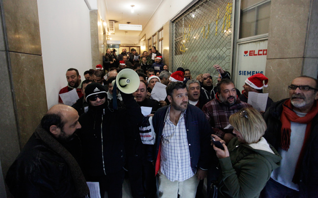 Στην είσοδο του υπουργείου έχουν παραταχθεί αστυνομικές δυνάμεις και ο πρόεδρος της ΠΟΕ-ΟΤΑ Θέμις Μπαλασόπουλος εξέφρασε τον φόβο ότι θα υπάρξει επέμβαση της αστυνομίας για να τους απομακρύνει.