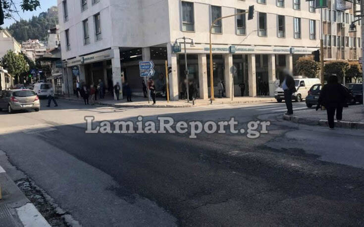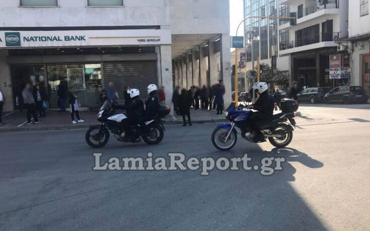Αστυνομικοί έκαναν έντονη την παρουσία τους τόσο στο κέντρο της Λαμίας στην πλατεία Πάρκου, όσο και στα περιφερειακά υποκαταστήματα που παρουσιάζεται ανάλογος συνωστισμός.
