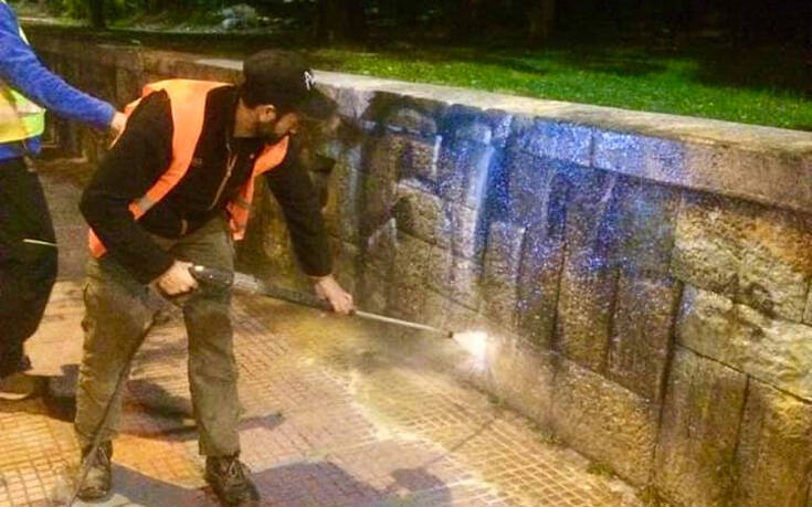 Συγκεκριμένα, ολοκληρώθηκε η επιχείρηση καθαρισμού της πέτρινης περίφραξης του Πάρκου που βρίσκεται στην 1η Δημοτική Κοινότητα, στο Κολωνάκι, δίπλα στον σταθμό του Μετρό.